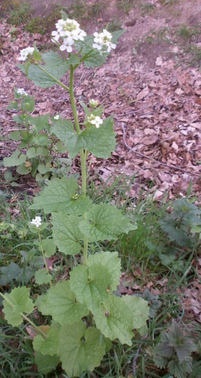 tweejarige plant die naar uien of knoflook ruikt als hij wordt geplet.