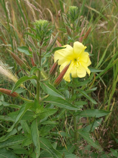 Teunisbloem, is een tweejarige plant met een penwortel. In het eerste jaar vormt zich een een laag rozet met wortelbladeren, het tweede jaar vormt zich een tot 1.50 m hoge aar met gele bloemen. Teunisbloem bloeit van eind juni tot medio Augustus De grote gele bloemen hebben 4 kroonbladeren, die recht of schuin omhoog groeien. Oorspronkelijk komt de teunisbloem uit Noord-Amerika, maar tegenwoordig vind je hem ook in grote delen van Europa. Te vinden op wilde grond, langs wegbermen en in de duinen. De penwortel die in het eerste jaar gevormd worden kun je klaarmaken door ze eerst te schillen en daarna te koken. Tijdens het koken dien je het water een keer te verversen. De wortels van de andere teunisbloemachtige zijn ook eetbaar. |