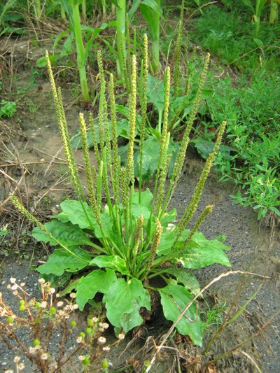 Smalle weegbree, is een vaste plant met een korte wortel en een