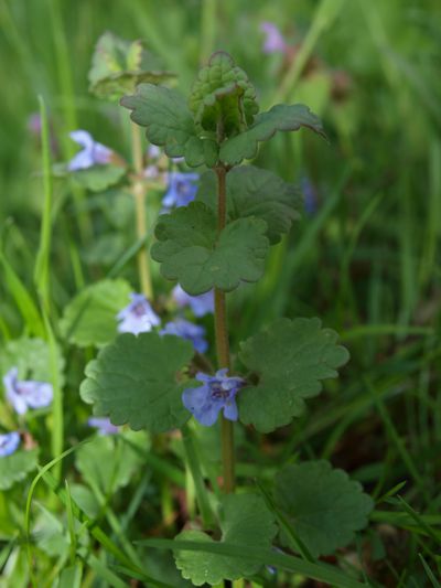 een hoogte van ca 20cm. Het blad is tegenoverstaand, glanzend groen, gekarteld en vrijstaand. Soms zijn de bladeren roodachtig doorgelopen. Hondsdraf bloeit van maart tot juni met blauwe of paars-blauwe bloemen die in een schijnkrans staan. Je kunt hondsdraf door geheel Europa vinden in weides, ooibossen, haagranden en op braakliggend terrein. Hondsdraf heeft een fijne kruidensmaak en is daarom goed to te voegen aan soepen of sausen. Hondsdraf is een geneeskrachtige plant die gebruikt wordt op wonden en tegen jeuk. Het werkt goed tegen de jeuk die je oploopt na zontact te hebben gehad met een brandnetel. Het mooie hiervan is dat ze vaak in de buurt van elkaar groeien. |