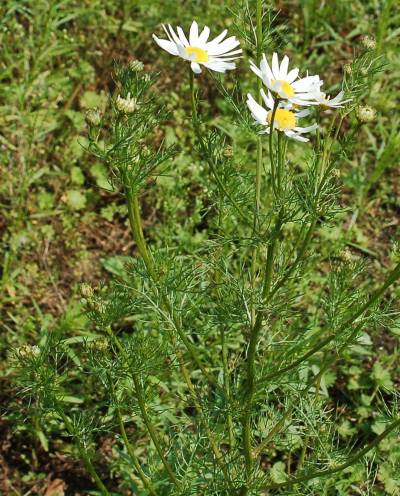Aan het einde van de bloei buigen de witte lintbloemen naar beneden Komt voor in vrijwel geheel Europa op droge, voedselrijke grond. Dit is bv akkerland en wegbermen. De bloemhoofden kunnen geplukt worden als de kroonblaadjes gaan hangen. Je kunt de bloemen vers of gedroogd gebruiken om er een kalmerende geurige thee van zetten. |