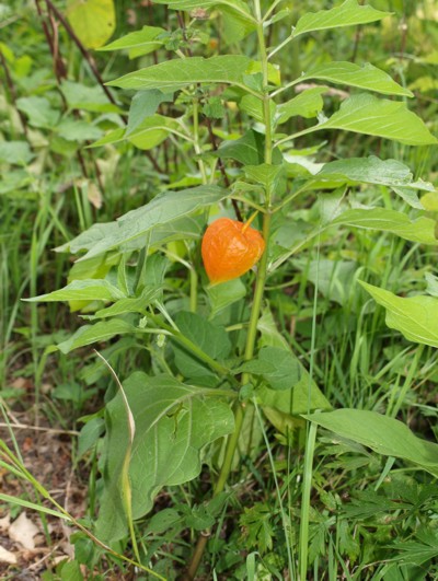 bevatten verspreid staande gesteelde bladeren. Om de beurt bloeien er 2-3 cm grote witte stervormige bloemen. Tijdens de bloei zijn de kelkbladen 5-8mm lang. Na de bloei groeit de kelk uit tot ze de vrucht omvat, deze vrucht vormt samen met de kelk een 4-5cm grote lampion. De bloeiperiode loopt van juni tot september. De plant komt waarschijnlijk uit Zuidoost Europa maar komt tegenwoordig in grote delen van Midden Europa voor. En dit exemplaar vond ik in Nederland langs de bosrand. De rode vrucht die zich in de lampion bevind kan gegeten worden. De vrucht bevat suikers, citroenzuur, vitamine C, physaline en ijzer. Let erop dat tijdens het plukken van de vrucht, deze niet in aanraking komt met de lampion. Hierdoor kan de vrucht een bitter smaak krijgen. Let op!!! De witte stervormige bloemen zijn giftig, contact met de plant kan leiden tot huidirritaties. |