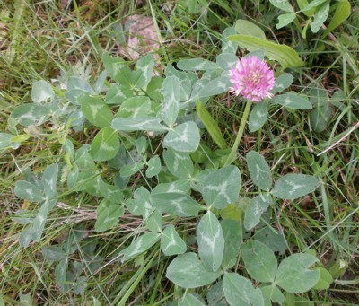 behaard, het blad is samengesteld drietallig. In het midden van het blad zit een lichte halvemaanvormige vlek. De Rode klaver bloeit van juni tot oktober met bolle tot eivormige, roze tot purperen bloemen. Je kunt de rode klaver vinden door geheel Europa op graslanden, langs paden en in wegbermen. Je kunt het jonge blad en de bloemen eten in de salade. Het blad kan gekookt worden als spinazie. Van de gedroogde bloemen kun je thee zetten. |