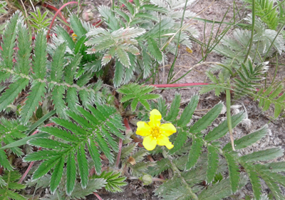 kleine overblijvende plant. De bladeren bestaan uit drie gezaagde