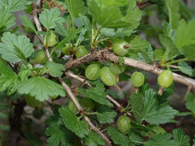 onderkant van het blad zijn zacht behaard. De kruisbes bloeit in April met groenachtige of vuilpaarse bloemen, de kelk heeft dezelfde kleur als de kroonbladeren. Van mei tot juni ontstaan er circa 2cm grote groene doorschijnende bessen met lange strepen. Kruisbessen vindt je in Zuidwest en Midden Europa in vochtige bossen langs rivieren en in gebergten tot een hoogte van circa 1400m. In de rest van Europa veel aangeplant in parken en tuinen. Kruisbessen zijn rauw als fruit te eten en bevatten per 100g 35mg aan vitamine C verder bevatten de bessen ook vitamine B1 en B2. |