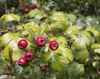 bessen aan de struik. Je kunt de Meidoorn door geheel Europa vinden in hagen en bossen. Het jonge blad kan rechtstreeks van de boom worden gegeten, of vermengd worden door de sla. Van de bessen kun je jam maken. |