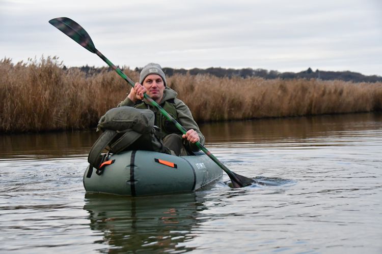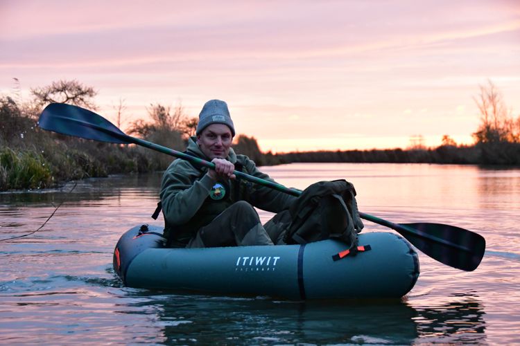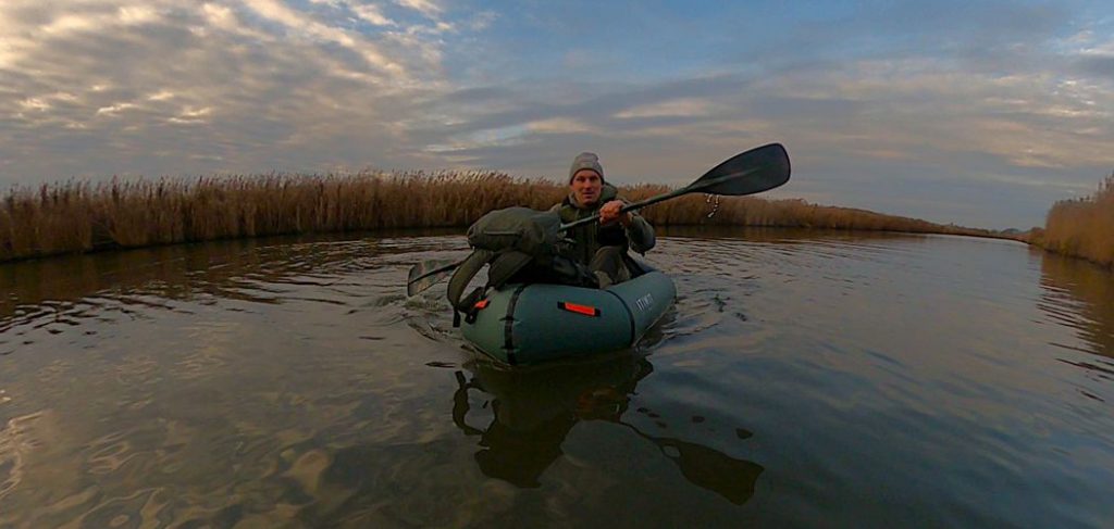 Het instappen was even wat lastiger dan ik was gewend met een kano of kajak, maar nadat ik op mijn plek zat voelde ik mezelf meteen één geheel met de boot die erg stabiel is en ook nog eens comfortabel zit. Mijn backpack heb ik voor in de packraft gelegd en met mijn 1.86m had ik voldoende ruimte en comfort.