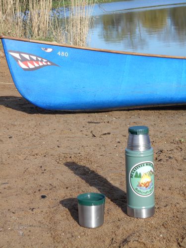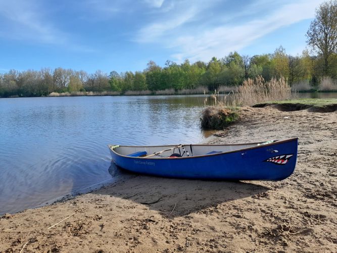 Eenmaal op de klotputten varen we naar het strandje om even te pauzeren met een kopje thee/koffie. Na een klein half uurtje gezellig bij gekletst te hebben stappen we weer in de kano om huiswaarts te keren.